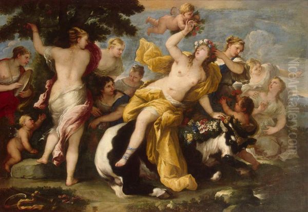 Bring the timeless beauty of Luca Giordano's Rape of Europa into your home with a handmade oil painting reproduction. Carefully recreated on canvas by skilled artists using traditional techniques, this piece captures the delicate brushwork, subtle light, and vibrant color of the original masterpiece. With museum-level quality and rich texture, it brings elegance and artistic depth to any space. Enjoy free shipping and make this masterpiece a part of your personal collection.