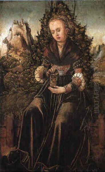 St. Mary Magdalen Seated On A Grassy Verge In A Mountainous Landscape