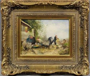 Lucien Frank’s Devant La Ferme (Before the Farm) captures the tranquil essence of rural life in late 19th-century Belgium with muted earthy tones and soft brushwork characteristic of the Realist tradition. The painting depicts peasants paused mid-task outside a humble farmstead, their subdued postures and weathered clothing rendered with unflinching yet compassionate accuracy—a hallmark of Frank’s socially observant eye. Unlike his Impressionist contemporaries, Frank favored somber palettes and chiaroscuro effects reminiscent of earlier Dutch genre scenes, grounding his work in quiet dignity rather than fleeting light. Though lesser-known than Monet or Courbet, Frank’s oeuvre offers a vital bridge between Northern European realism and early modernist social narratives, with Devant La Ferme exemplifying his gift for elevating mundane moments into universal meditations on labor and stillness.