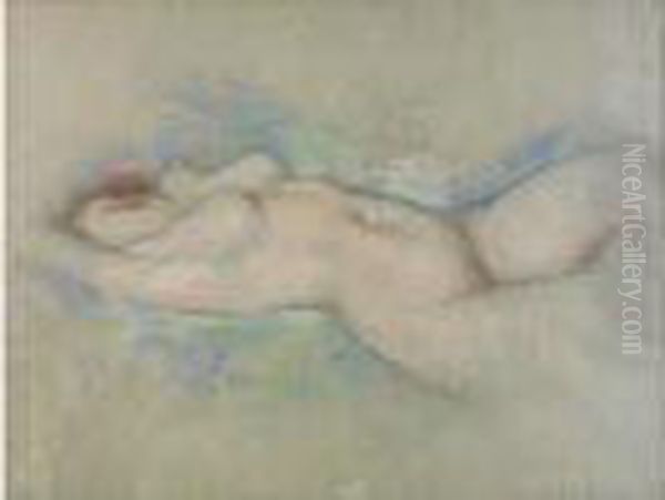 Lucien Levy-Dhurmmer's Nu Bleu (c.1900) epitomizes the dreamlike mystique of Symbolist painting, blending Art Nouveau's fluidity with a Pre-Raphaelite reverence for allegory. The work depicts a nude female figure immersed in an atmospheric blue haze, her elongated form dissolving into abstract brushstrokes that suggest both flesh and spirit. Painted during Symbolism's peak in France, it reflects Dhurmer's signature style—poetic ambiguity tinged with eroticism, where color becomes emotion (the titular blue evokes melancholy and transcendence). Historically, it bridges 19th-century academic traditions and early modernist experiments in chromatic abstraction, positioning Dhurmer as a quiet revolutionary who influenced later Expressionist colorists like Delaunay. The painting’s unresolved tension between realism and abstraction makes it a fascinating footnote in fin-de-siècle art.