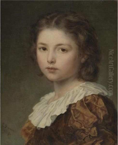 Portrait Of A Young Girl Oil Painting by Ludwig Knaus