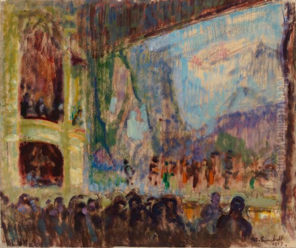 Magnus Enckell’s Interiorbild fran Finska Operan (Interior from the Finnish Opera) is a captivating glimpse into the elegant world of early 20th-century Finnish art. Painted in 1911, the work showcases Enckell's signature blend of Symbolism and early Modernism, with soft, ethereal light filtering through an opulent opera house interior. The composition balances grandeur and intimacy, with delicate architectural details and a subdued yet luminous palette that evokes a sense of quiet sophistication. Enckell, a pivotal figure in Finnish art, was known for his ability to infuse everyday scenes with psychological depth, and this piece reflects his mastery in capturing atmosphere and emotion. Interiorbild fran Finska Operan stands as a testament to Finland's cultural renaissance during this period, bridging national romanticism and European avant-garde influences. Its historical significance lies in its celebration of Finnish identity while embracing universal artistic innovations.
