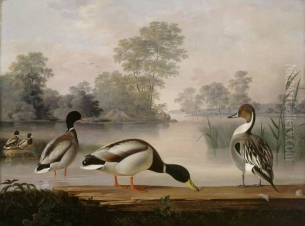 Magnus von Wright’s Ducks is a vivid celebration of Nordic wildlife, capturing a moment of serene natural beauty with remarkable precision. Painted in the 19th century, the work exemplifies the artist's scientific approach merged with artistic sensibility—Von Wright, originally trained as a taxidermist and naturalist, imbued his avian subjects with lifelike dynamism. The composition often features ducks floating peacefully on water, their plumage rendered in exquisite detail against soft, atmospheric backgrounds reflecting Finland’s muted light. As part of the von Wright brothers' legacy, this piece occupies a unique niche in art history, bridging ornithological illustration and fine art during Scandinavia’s Romantic Nationalism era. Its blend of accuracy and aesthetic warmth makes it a treasured precursor to modern wildlife art.