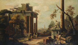 Marco Ricci's Landscape With Ruins immerses viewers in a poetic yet dramatic vision of nature reclaiming human grandeur. Set against a luminous sky, crumbling classical arches and overgrown vegetation evoke themes of transience and the sublime, characteristic of 18th-century Venetian veduta (view painting). Ricci’s work blends meticulous detail with theatrical lighting, reflecting his background as a stage designer and his influence from Northern European landscape traditions. As a precursor to Capriccio—whimsical architectural fantasies later popularized by Canaletto—this painting symbolizes Baroque’s transition into Rococo lightness. Its historical significance lies in bridging documentary precision with imaginative storytelling, offering a melancholic yet awe-inspiring meditation on time’s passage.
