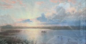 Margitay Tihamer’s Daybreak encapsulates the ethereal beauty of dawn through a masterful interplay of light and color. Born in Hungary in 1886, Tihamer was renowned for his atmospheric landscapes that blended Impressionist sensitivity with subtle Symbolist undertones. The painting depicts a tranquil lakeside scene bathed in the soft, golden glow of sunrise, where misty reflections dissolve into delicate brushstrokes. Tihamer’s signature use of shimmering, layered hues creates a dreamlike quality, evoking serenity and renewal—an ode to nature’s quiet majesty. Though lesser-known internationally, his works hold a cherished place in Central European art for their poetic realism and emotional depth, bridging late 19th-century romanticism and early modernist experimentation.