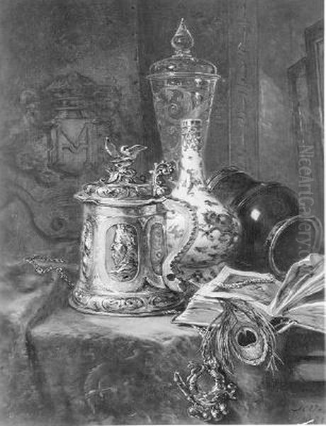 Maria Vos's Stilleven captivates viewers with its serene yet rich portrayal of everyday objects transformed into art. Painted in the 19th century during the Dutch still-life revival, Vos's work reflects meticulous attention to detail, texture, and composition—hallmarks of traditional Northern European realism. The play of light on ceramics, fruits, and draped fabrics creates warmth and depth, while subtle tonal variations lend sophistication. Though lesser-known than male contemporaries like Willem Claesz Heda, Vos contributed significantly to the genre, especially as a rare female artist recognized professionally in her time. Her balanced arrangements and restrained palette distinguish her style, bridging classical technique with intimate storytelling. This painting exemplifies how Dutch still lifes elevated humble subjects into meditations on transience and beauty.