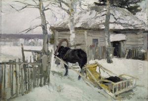 Marianne Stokes’ Winter (1907) is a hauntingly beautiful portrayal of quiet resilience amidst the harshness of nature. The painting depicts a solitary woman bundled in traditional Eastern European dress, trudging through snow-covered fields beneath a pale, wintry sky. Stokes’ meticulous Pre-Raphaelite-inspired technique renders every delicate snowflake and woven textile with luminous detail, while the subdued palette of frosty blues and soft grays evokes both the chill of winter and a sense of serene stillness. As one of the leading female artists of the late Victorian era, Stokes was celebrated for her compassionate depictions of rural life and folk traditions—often modeled after travels to Slovakia with her husband, painter Adrian Scott Stokes. Winter exemplifies her signature blend of realism and symbolism, bridging 19th-century narrative painting and the emerging romantic nationalism in European art. Today, it stands as a poignant testament to her overlooked genius and a window into vanishing cultural identities.