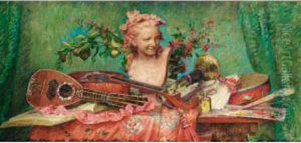 Nature Morte Aux Instruments De Musique Et Buste De Carpeaux