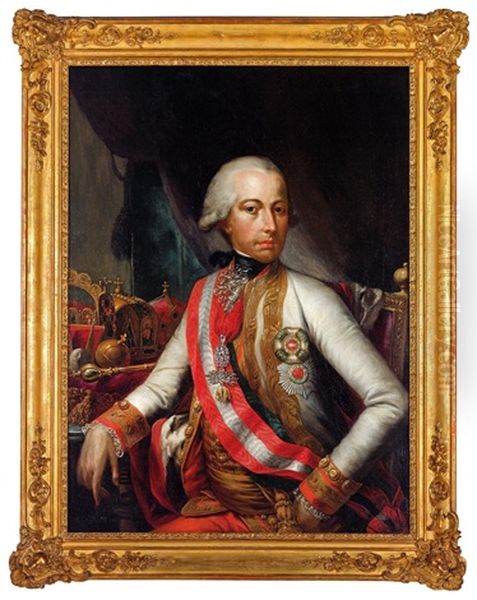 The portrait Kaiser Joseph II by Martin Knoller is a striking depiction of the Holy Roman Emperor, radiating authority and Enlightenment ideals. Painted in the late 18th century, the artwork captures Joseph II in a dignified yet approachable manner—his piercing gaze and refined posture reflect his reputation as a reformist ruler. Knoller's neoclassical style emphasizes clarity, balance, and restrained emotion, aligning with the era's shift from Baroque exuberance to rational elegance. The muted yet warm palette, intricate detailing of the emperor's attire, and soft background lighting create a sense of gravitas without overt grandeur. Historically, this work is significant as it embodies the intellectual spirit of the Habsburg court and Knoller's mastery in portraiture, bridging the transition between Rococo and Neoclassicism.