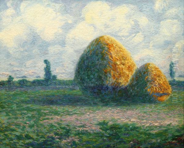 Las parvas (la pampa de hoy) by Martín Malharro is a luminous evocation of the Argentine pampa, bathed in the soft glow of twilight. Painted in the early 20th century, this masterpiece captures the serene vastness of the plains, where golden haystacks (parvas) stand as silent witnesses to rural life. Malharro, a pioneer of Argentine Impressionism, employs delicate brushstrokes and a harmonious palette of ochres, blues, and muted greens to convey the tranquil beauty of the landscape. The play of light and shadow reflects his study of French Impressionism, yet the work remains distinctly rooted in the cultural identity of the pampa. Historically, Malharro’s work marks a turning point in Argentine art, bridging European techniques with local themes, and Las parvas exemplifies this synthesis. Its poetic realism and emotional depth have cemented its status as a cornerstone of Latin American modernist landscape painting.