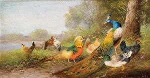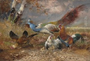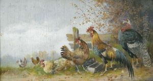 Huhnerhof Oil Painting by Max Josef Haenger Sr.