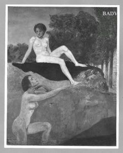 Kampfende Manner Hinter Einer Blumengirlande (wandpaneel)