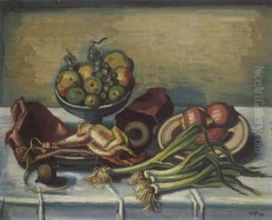 Stilleben Mit Huhn Und Obstschale