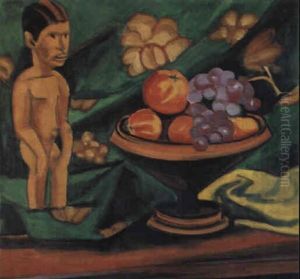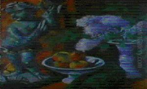 Stilleben Mit Flieder (putto Und Obstschale) Olstudie Einer Waldlandschaft