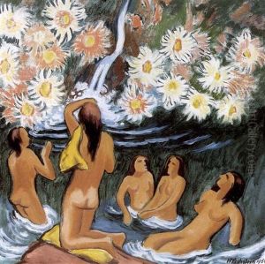Badende Oil Painting by Max Pechstein