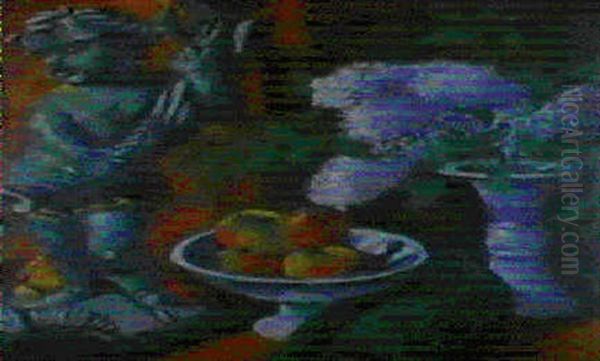 Stilleben Mit Flieder (putto Und Obstschale) Olstudie Einer Waldlandschaft