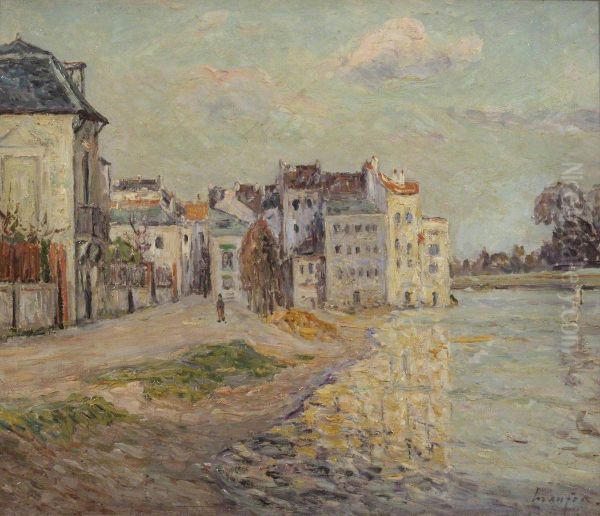 Maxime Maufra’s The Embankment of Lagny under Flood Water captures a fleeting moment of nature’s quiet drama, where subdued light and reflective waters blur the boundary between earth and sky. Painted in the late 19th or early 20th century, this work embodies the Impressionist tradition with its loose brushwork and focus on atmospheric effects, yet Maufra’s approach leans toward a more structured composition, reflecting his Post-Impressionist influences. The scene, likely inspired by the Seine-Marne region, portrays floodwaters engulfing the riverbank—a theme echoing Monet’s Water Lilies but with a distinct sense of tranquility rather than turbulence. Maufra, though less celebrated than his peers like Pissarro or Sisley, contributed to the evolution of landscape painting by bridging Impressionism’s spontaneity with a subtle tonal harmony. This piece exemplifies his ability to transform ordinary vistas into poetic meditations on light and water, securing his niche in art history as a deft interpreter of nature’s ephemeral moods.