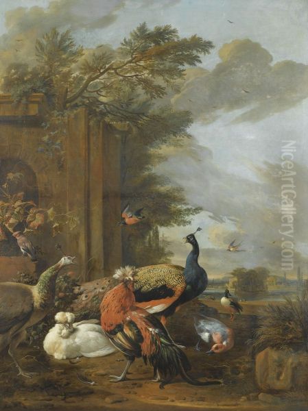 Bring the timeless beauty of Melchior D'Hondecoeter's A peacock, a peahen, a jay, a swallow, a kingfisher, a mallard, ducks and hens in an elegant parkland setting into your home with a handmade oil painting reproduction. Carefully recreated on canvas by skilled artists using traditional techniques, this piece captures the delicate brushwork, subtle light, and vibrant color of the original masterpiece. With museum-level quality and rich texture, it brings elegance and artistic depth to any space. Enjoy free shipping and make this masterpiece a part of your personal collection.