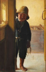 En lille fiskerdreng kigger ind ad doren.