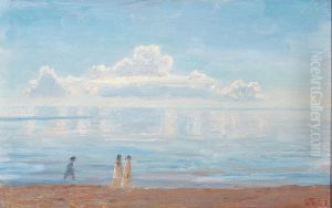 Michael Peter Ancher’s En lille fiskerdreng kigger ind ad døren (A Little Fisher Boy Peeking Through the Door) captures a quiet yet powerful moment of everyday life in 19th-century Skagen. The painting, created in 1884, exemplifies the Danish Realism movement and Ancher’s mastery in portraying the harsh yet poetic lives of Skagen’s fishing community. A young boy, dressed in traditional fisherman’s attire, peeks curiously through a half-open door, his face illuminated by soft natural light. The warm interior tones contrast with the cooler hues of the doorway, creating depth and a sense of intimacy. Ancher’s meticulous brushwork and keen attention to detail highlight textures like the weathered wood and coarse fabric, grounding the scene in realism. As a key figure of the Skagen Art Colony, Ancher bridged naturalism and modernism, making this piece historically significant—it reflects both regional identity and universal human curiosity, placing it among Denmark’s most cherished genre paintings.