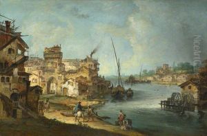 A Capriccio Of The Venetian Lagoon, With Sailors Unloading Goods And Travellers On A Path