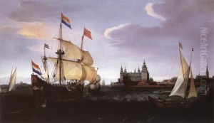 Michele Marieschi’s Buildings and Figures near a River with Shipping epitomizes the vibrant energy of 18th-century Venetian vedute painting. The scene unfolds along a bustling river, where grand architecture—likely inspired by Venice’s iconic canals—frames the composition, bathed in warm, golden light. Ships glide gracefully on the water, their sails catching the breeze, while figures animatedly go about their daily routines, adding a lively human element. Marieschi’s meticulous attention to detail and masterful play of light and shadow reveal influences from Canaletto yet retain a distinctive dynamism. This work stands as a testament to the Rococo era’s fascination with urban landscapes and theatricality, bridging documentary precision and poetic charm. Though less renowned than his contemporaries, Marieschi’s contributions to Venetian view painting remain pivotal, offering a glimpse into the city’s historical grandeur.
