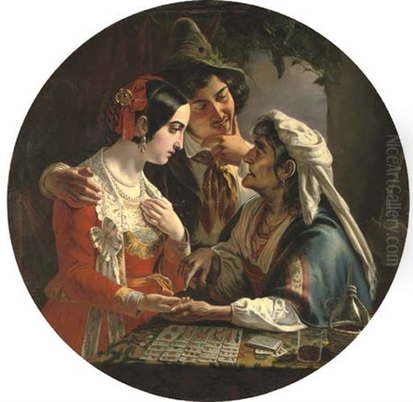 Bring the timeless beauty of Mikhail Ivanovich Skotti's The Fortune Teller into your home with a handmade oil painting reproduction. Carefully recreated on canvas by skilled artists using traditional techniques, this piece captures the delicate brushwork, subtle light, and vibrant color of the original masterpiece. With museum-level quality and rich texture, it brings elegance and artistic depth to any space. Enjoy free shipping and make this masterpiece a part of your personal collection.