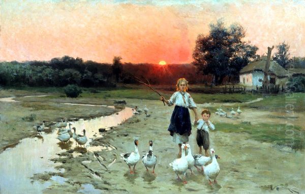 Bring the timeless beauty of Mykola Pymonenko's Vecorie into your home with a handmade oil painting reproduction. Carefully recreated on canvas by skilled artists using traditional techniques, this piece captures the delicate brushwork, subtle light, and vibrant color of the original masterpiece. With museum-level quality and rich texture, it brings elegance and artistic depth to any space. Enjoy free shipping and make this masterpiece a part of your personal collection.