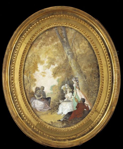 Niclas Lafrensen’s Ladies and Gentlemen Making Music in The Open Air captures the refined elegance of 18th-century Rococo society with delicate charm. Painted in the late 1700s, this intimate gouache work showcases Lafrensen’s signature style—gracefully posed figures draped in elaborate silk attire, gathered amidst a lush garden setting. The scene exudes lightheartedness, with aristocrats leisurely playing instruments, their expressions radiating genteel merriment. Lafrensen, a Swedish artist celebrated at the French court, excelled in portraying fashionable leisure, blending Watteau’s fête galante tradition with meticulous detail. Though smaller in scale, his works hold significance for their documentary precision in depicting period costumes and bourgeois pastimes, bridging Rococo’s whimsy and the emerging Neoclassical sobriety. Today, this piece epitomizes the fleeting joy of pre-revolutionary aristocratic life.