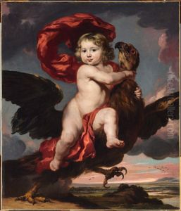 Portrait Of A Young Boy As A Mercury With Two Dogs In A Landscape