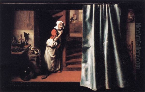 Bring the timeless beauty of Nicolaes Maes's Eavesdropper with a Scolding WomanDeutsch:Lauscherin mit schimpfender Frau into your home with a handmade oil painting reproduction. Carefully recreated on canvas by skilled artists using traditional techniques, this piece captures the delicate brushwork, subtle light, and vibrant color of the original masterpiece. With museum-level quality and rich texture, it brings elegance and artistic depth to any space. Enjoy free shipping and make this masterpiece a part of your personal collection.