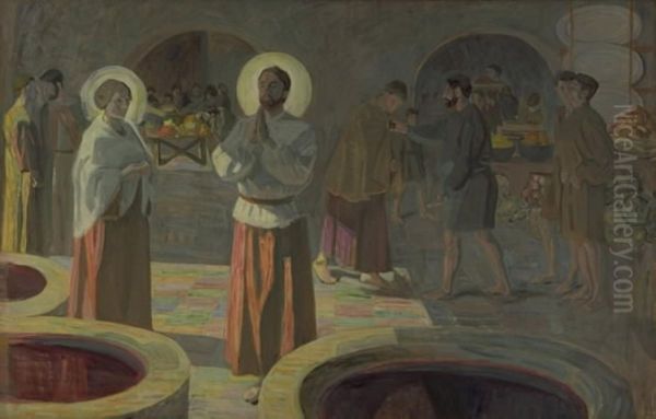 Bring the timeless beauty of Niels Larsen Stevns's The Wedding at Cana into your home with a handmade oil painting reproduction. Carefully recreated on canvas by skilled artists using traditional techniques, this piece captures the delicate brushwork, subtle light, and vibrant color of the original masterpiece. With museum-level quality and rich texture, it brings elegance and artistic depth to any space. Enjoy free shipping and make this masterpiece a part of your personal collection.
