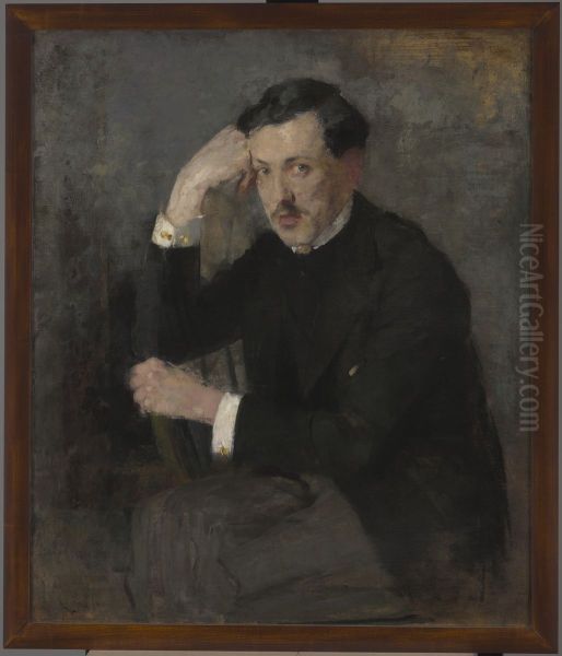 Olga Boznańska's Portrait of Jozef Czajkowski — a mesmerizing two-sided painting — epitomizes the artist's mastery of psychological depth and atmospheric subtlety. Created during Poland's vibrant modernist period (1896), this dual portrait captures Czajkowski — painter, architect and decorative artist — through Boznańska's signature muted palette and loose, expressive brushwork that recalls Whistler's tonalism yet pulses with Slavic intensity. The obverse reveals Czajkowski's penetrating gaze emerging from olive-umber shadows, his posture slightly turned to suggest creative restlessness, while the verso (study of hands) becomes a silent manifesto of artistic process. As a rare double-sided easel painting by Poland's foremost female impressionist — whose works commanded Parisian salons and now grace the National Museum collections — it represents a pivotal bridge between academic portraiture and modern emotional abstraction. The work's existential gravity, achieved through velvety layers of pigment dissolving into the background, marked Boznańska as Central Europe's answer to John Singer Sargent.
