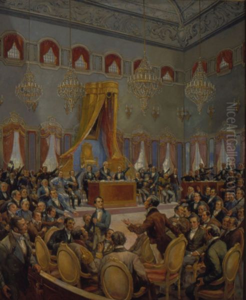 Bring the timeless beauty of Oscar Pereira Da Silva's Sessao das Cortes de Lisboa into your home with a handmade oil painting reproduction. Carefully recreated on canvas by skilled artists using traditional techniques, this piece captures the delicate brushwork, subtle light, and vibrant color of the original masterpiece. With museum-level quality and rich texture, it brings elegance and artistic depth to any space. Enjoy free shipping and make this masterpiece a part of your personal collection.