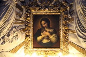 For a modern space, this masterpiece’s ethereal gold tones and sacred subject matter lend themselves to refined, classical interiors. Consider hanging it in a study or formal living room with warm, neutral walls to allow the gold accents to resonate. Pair it with rich textiles—velvet or silk in deep blues or burgundies—to echo the painting’s regal palette. A gilded frame would enhance its Gothic grandeur, while minimalist furnishings would prevent visual competition. At 24 x 18 inches (typical of panel paintings of the era), it suits an intimate focal point above a console or fireplace. In an office, it could inspire tranquility alongside dark wood shelving and subdued lighting, bridging history and sophistication. Its spiritual gravitas makes it ideal for spaces meant for reflection or creative thought.