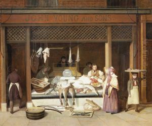 For interior styling, Pescheria Dal Vero would shine in spaces celebrating rustic charm or Mediterranean aesthetics. Ideal for a kitchen, dining area, or casual office, its warm ochers and blues could anchor a color scheme with terracotta accents, weathered wood, or muted linens. A medium-to-large size (24x36 inches or similar) would ensure the scene’s details pop without overwhelming. Pair it with wrought-iron lighting, ceramic tableware, or open shelving to echo its market ambiance. In minimalist settings, let it serve as a bold focal point against neutral walls, or group it with other small still lifes for a salon-style display. The painting’s narrative energy suits collaborative workspaces or hospitality venues, inviting conversation while radiating warmth.
