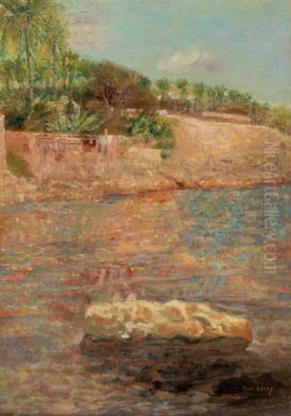 Leroy’s "L’oued Au Pied De L’oasis" (The Stream at the Foot of the Oasis) is a captivating Orientalist masterpiece that transports viewers to a tranquil North African landscape. Painted by Paul Alexandre Alfred Leroy, a prominent 19th-century French Orientalist, the work exemplifies the European fascination with exotic locales during the colonial era. The scene depicts a lush oasis, where light dances on the water of a gentle stream, framed by swaying palm trees and distant arid hills—a harmonious contrast between life and desert. Leroy’s meticulous brushwork and luminous palette reflect Academic realism infused with Romantic sensibilities, capturing both topographical accuracy and atmospheric poetry. As part of the Orientalist movement, the painting holds historical significance, offering a window into Western perceptions of the "mystical East," though modern viewers may also critically reflect on its colonial context. Its serene beauty and technical mastery ensure its enduring appeal in art history.