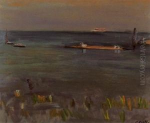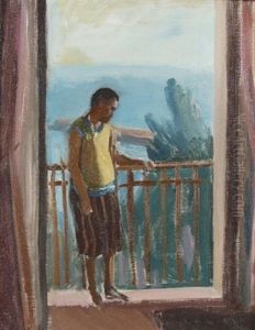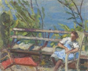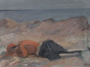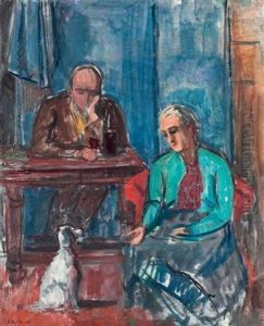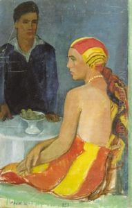 Drei Manner Im Gartenrestaurant (+ Sketch Of A Dog, Verso)