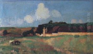 Weite Landschaft Mit Portal Und Weidenden Pferden