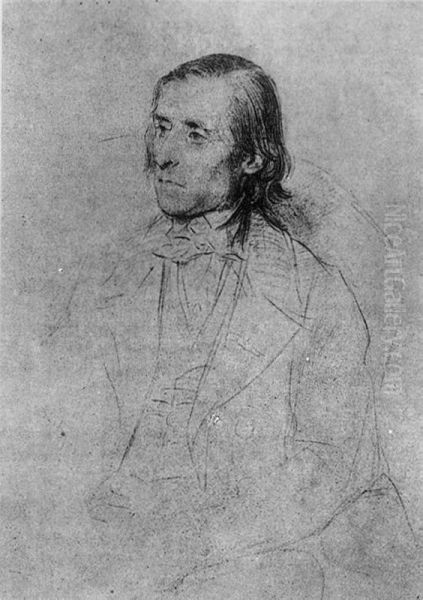 For interior decor, this portrait would elevate a study, library, or office space with its timeless gravitas. Ideal for traditional or neoclassical settings, it pairs well with rich wood furnishings, leather-bound books, and brass accents. The painting’s muted tones harmonize with deep greens, burgundies, or navy walls, while its compact size (likely under 1 meter wide) suits it for focal-point placement above a desk or within a gallery wall of 19th-century art. For contrast, frame it in an ornate gold or blackened wood moulding to accentuate its academic elegance. In a modern space, it could serve as a compelling juxtaposition against minimalist décor, adding historical depth. Avoid overly bright or cluttered surroundings—let its quiet intensity command attention.