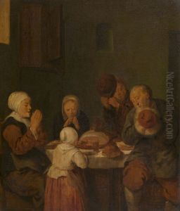 For modern interiors, Voor De Maaltijd would elevate spaces desiring a touch of understated elegance. Its muted palette—ochre, cream, and subtle greens—pairs seamlessly with rustic, Scandinavian, or transitional decor, ideally hung in a dining nook or kitchen to echo its thematic resonance. A medium-to-large size (around 24x36 inches) ensures visibility without overwhelming smaller rooms. Frame it in a distressed wood or slim gilded finish to complement its vintage charm while keeping the focus on the painting’s soothing atmosphere. In offices, it would lend calm to breakout areas, its subject matter fostering a sense of pause and reflection. For color harmony, incorporate textiles or ceramics in matching earthy tones—think linen upholstery or terracotta accents—to create a cohesive, inviting environment. The artwork’s quiet dignity makes it a versatile choice for both homes and workspaces seeking refined, timeless character.