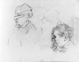 Ansiktsstudier. Blad 19 verso i skissbok om 36 blad