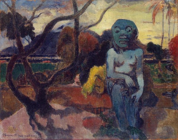Paul Gauguin’s Rave te hiti aamu (translated as "Morning of the Gods") is a mesmerizing Tahitian dreamscape that immerses viewers in an exotic, sun-drenched paradise. Painted in 1894 during his first stay in Tahiti, the work reflects Gauguin’s pursuit of an unspoiled, mystical world far from European modernity. Rich, saturated hues—vibrant greens, deep blues, and warm ochres—create a lush, rhythmic composition where native figures, tropical foliage, and symbolic motifs merge into a harmonious, almost sacred tableau. The painting exemplifies Gauguin’s signature Synthetist style, flattening perspective and emphasizing bold outlines and emotive color blocks. As a pivotal piece in his oeuvre, it captures his romanticized vision of Polynesia and his rejection of Western artistic conventions, cementing his legacy as a Post-Impressionist pioneer who bridged the gap between tradition and modernism.