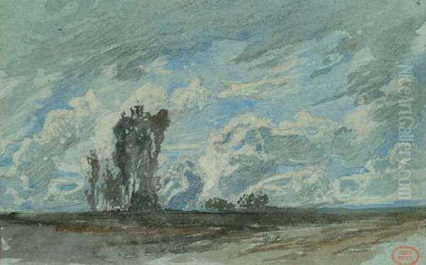 Paul Huet’s Etude De Ciel A Fontenay-aux-roses is a breathtaking 19th-century landscape study that captures the ephemeral beauty of the sky over Fontenay-aux-Roses, a commune near Paris. The painting exemplifies Huet’s mastery of Romanticism, with its dramatic, swirling clouds and luminous interplay of light and shadow. Known as a pioneer of French landscape painting, Huet infused his works with emotional intensity and a keen observation of nature’s moods—qualities that bridged the Neoclassical tradition and the emerging plein-air movement. This particular study, likely created en plein air, reflects his dedication to capturing transient atmospheric effects, a technique that later influenced the Impressionists. Though less commercially celebrated than his contemporaries like Delacroix, Huet’s contributions to Romantic landscape painting solidify his place in art history as a visionary who elevated skies from mere backdrops to emotive protagonists.