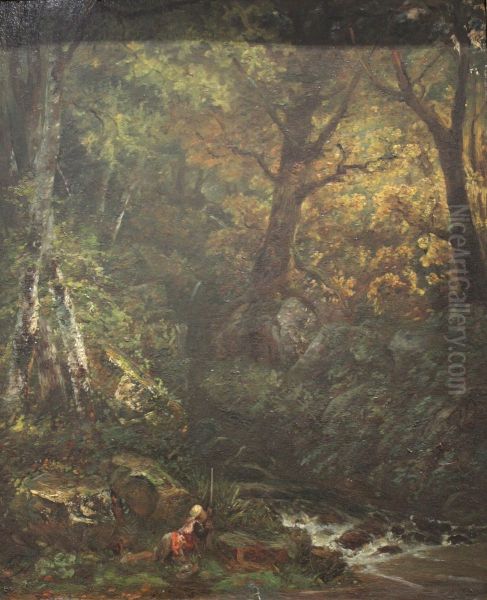 Paul Huet’s La Cascade du Gros-Hêtre aux Eaux-Bonnes (1844) is a breathtaking Romantic landscape that captures the untamed beauty of the Pyrenees. The painting depicts a cascading waterfall framed by ancient trees and rugged rocks, rendered with dramatic light and dynamic brushwork. Huet, a key figure in French Romanticism, infused the scene with emotional intensity—contrasting the foaming white waters against shadowy foliage and soft, atmospheric skies. Inspired by his travels to Eaux-Bonnes, the work reflects the era’s fascination with nature’s sublime power. Unlike the idealized landscapes of Neoclassicism, Huet’s expressive style influenced the later Barbizon School, bridging Romanticism and Realism. Today, the painting is celebrated for its pioneering use of movement and texture, marking a shift toward modern landscape painting.
