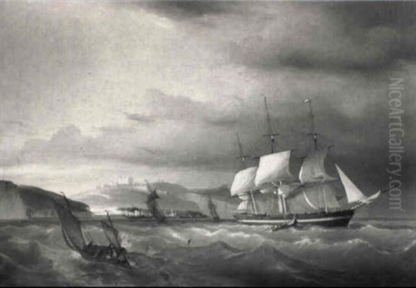 Paul Jean Clays' A View Of The Port Of Dunkerque With A Three-master Setting Out captures the bustling energy of 19th-century maritime life with remarkable precision and atmospheric charm. Painted circa 1856, this oil on canvas showcases Clays' mastery of the Romantic-realist style, blending dramatic skies and luminous water reflections with meticulous attention to nautical detail. The composition draws the eye toward the majestic three-masted ship as it embarks, framed by smaller vessels and dockworkers that animate the scene. As a leading Belgian marine painter, Clays distinguished himself by avoiding overt idealism; his works instead celebrate the authentic poetry of harbors through nuanced handling of light and texture. This particular piece exemplifies his pivotal role in transitioning maritime painting from documentary records to evocative artistic statements, earning acclaim at Paris Salons and influencing subsequent generations of realist artists.