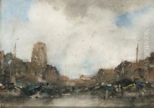 A Painter (w.b. Tholen?) At Work In A Punter On A Sunny Day