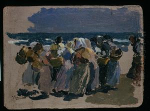 Peder Severin Krøyer’s Nogne Born Ved En Bad Pa Skagens Sonderstrand (Children Bathing at Skagen’s South Beach) is a vibrant yet serene masterpiece from the Danish Golden Age of painting. Capturing a sun-drenched moment on the shores of Skagen, the work embodies the luminous plein air style Krøyer perfected, blending Impressionist light effects with realistic detail. Painted in the late 19th century, it reflects the Skagen Painters’ fascination with coastal life and natural light, showcasing children playing by the water—a theme echoing joy and innocence. Krøyer’s delicate handling of sunlight dancing on skin and waves, paired with soft, diffused shadows, places this piece among his most celebrated works, symbolizing the idyllic harmony between humanity and nature. Its historical significance lies in its contribution to Nordic Impressionism, bridging intimacy with technical brilliance.