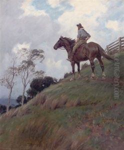The painting A Mounted Stockman by Percy Fredrick Seaton Spence captures the rugged spirit of the Australian outback with striking authenticity. Painted in the early 20th century, Spence’s work embodies the realism and romanticism of bush life, showcasing a lone stockman on horseback, framed by the vast, untamed landscape. The composition exudes dynamism—dust swirls around the horse’s hooves, the rider’s posture suggests quiet command, and the soft golden hues of the hinterland evoke the harsh yet mesmerizing beauty of rural Australia. Spence, a prominent figure in Australian pastoral art, was celebrated for his ability to blend technical precision with emotional depth. A Mounted Stockman stands as a testament to his mastery, reflecting both the historical significance of stockmen in Australian culture and the broader tradition of narrative-driven, regionalist art. Its evocative realism places it among the defining works of early Australian modernism, bridging colonial romanticism and 20th-century artistic innovation.