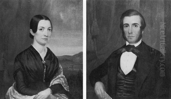 Portrait Of A Young Woman In Laced-edged Blue Dress And White Shawl